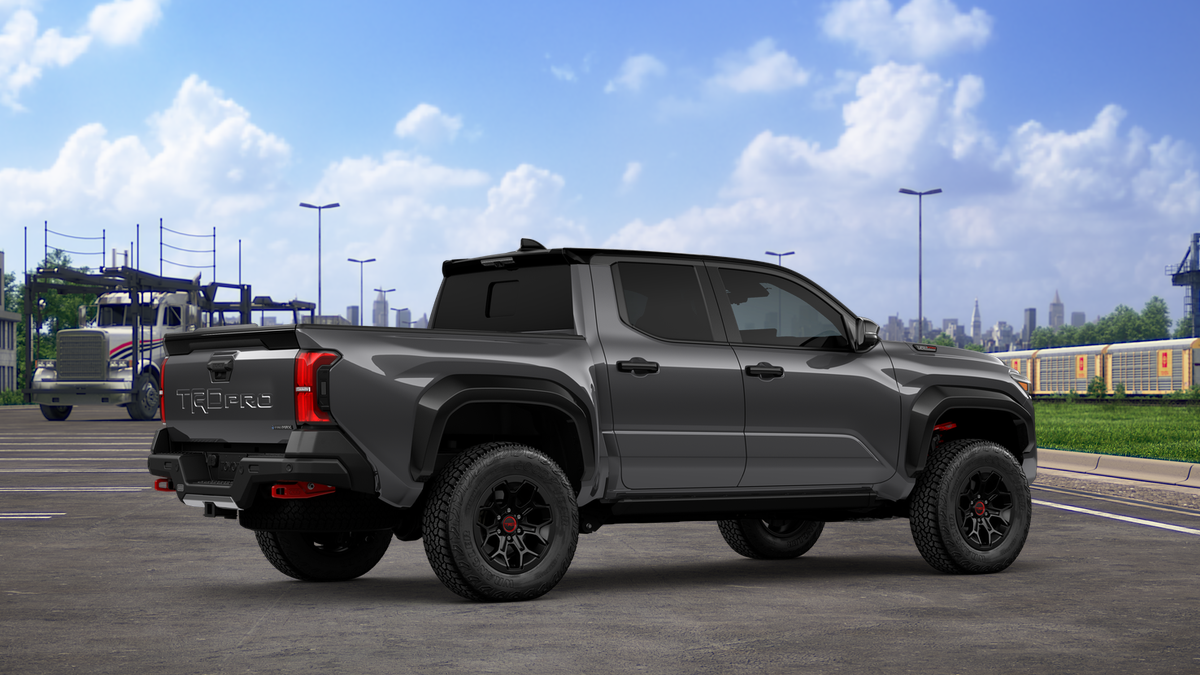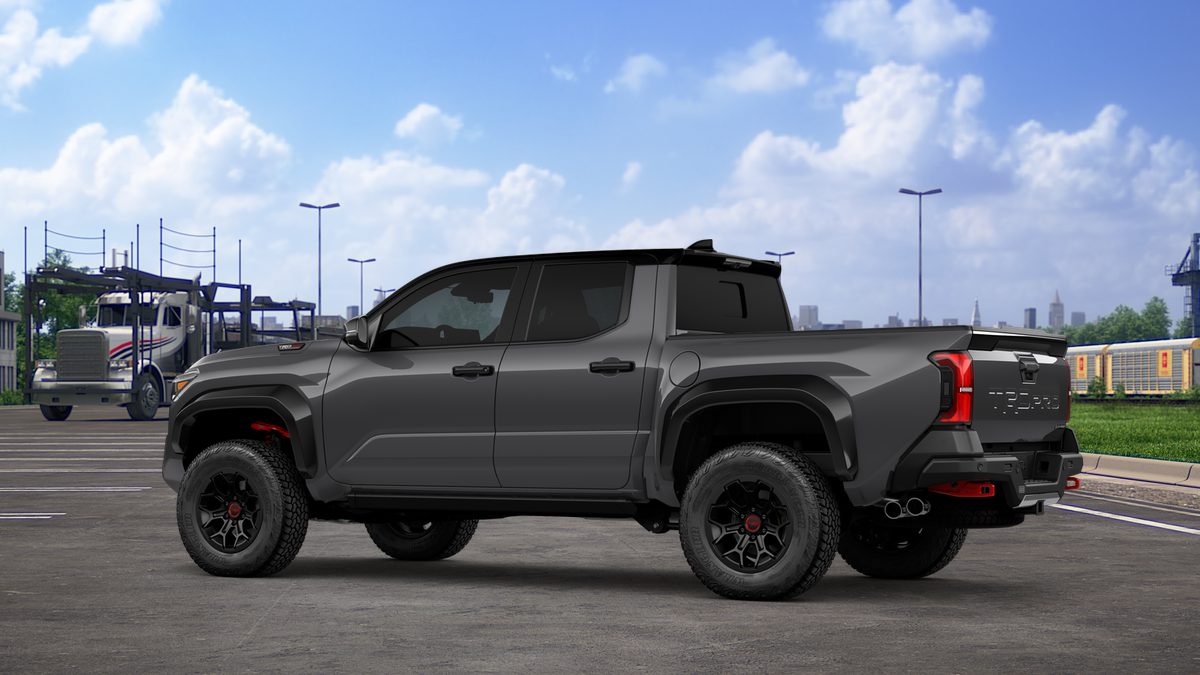 - "TRD Pro" stamped power open-and-close tailgate with hands-free knee-lift assist, integrated taillight bump switches, and jam protection