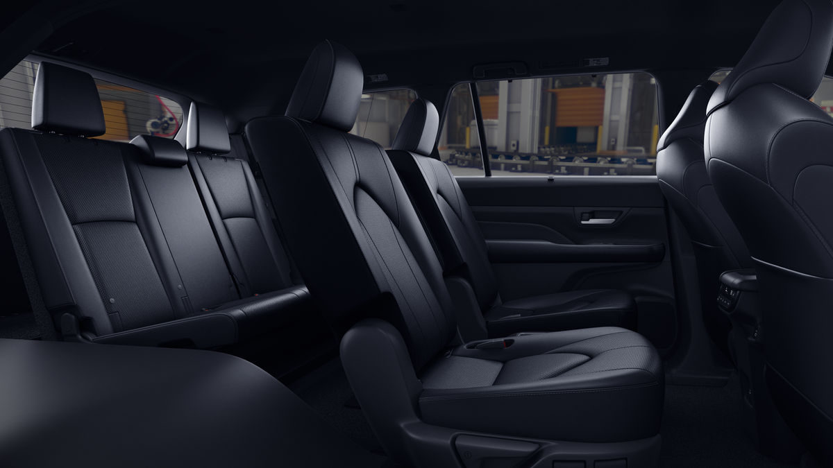 - 7-passenger seating with second-row fold-down captain's chairs and fold-down inboard armrests, adjustable headrests and two cup holders mounted on the floor; and 60/40 split, fold-down third-row seats with sliding headrests and recline function