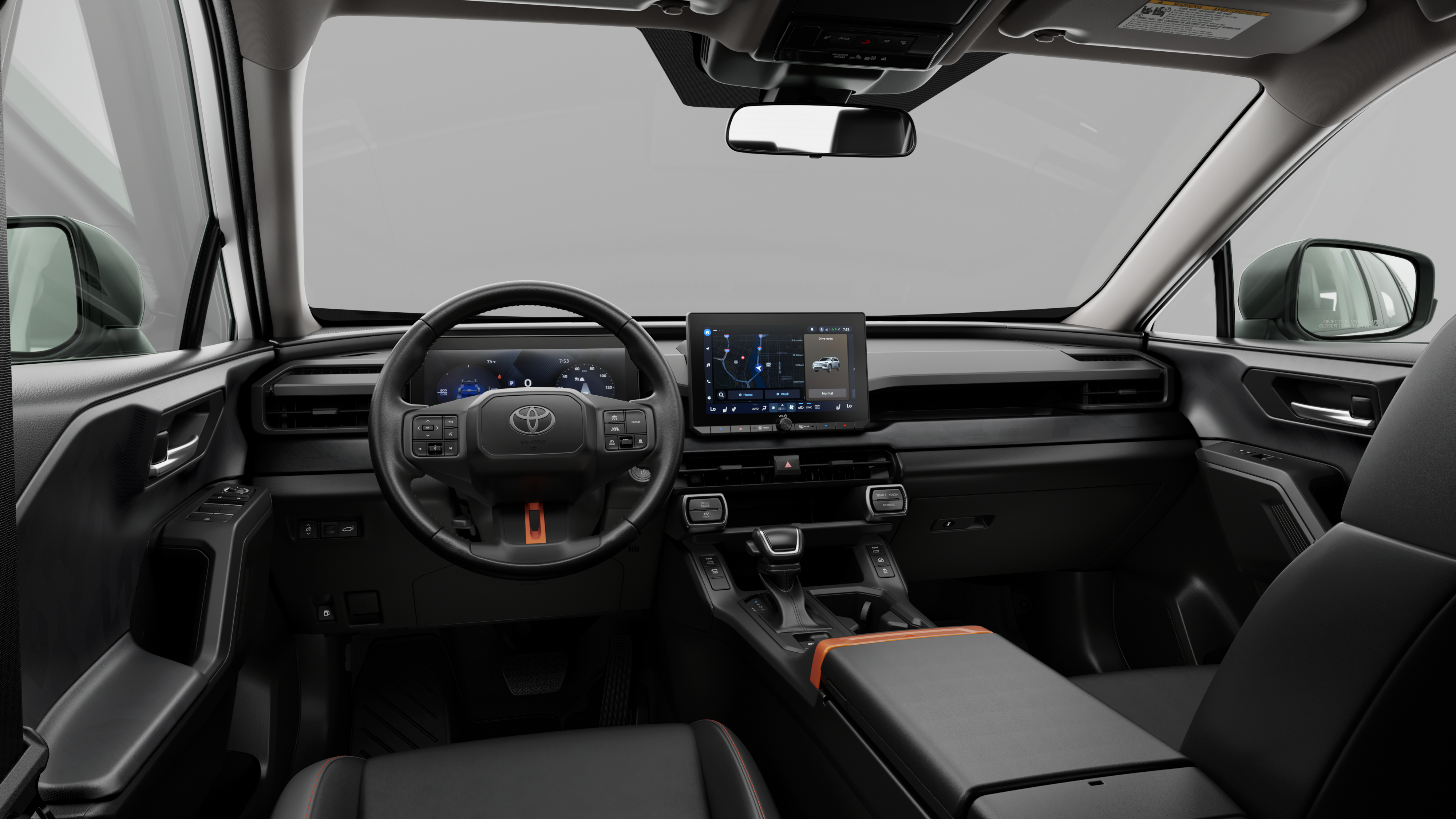 - Center console with covered storage compartment, reversible armrest/console tray, two cup holders, drive mode (Trail, Snow, Normal and EV mode ), auto LSD/VSC, Electric Parking Brake (EPB) and automatic Brake Hold controls, and front storage tray