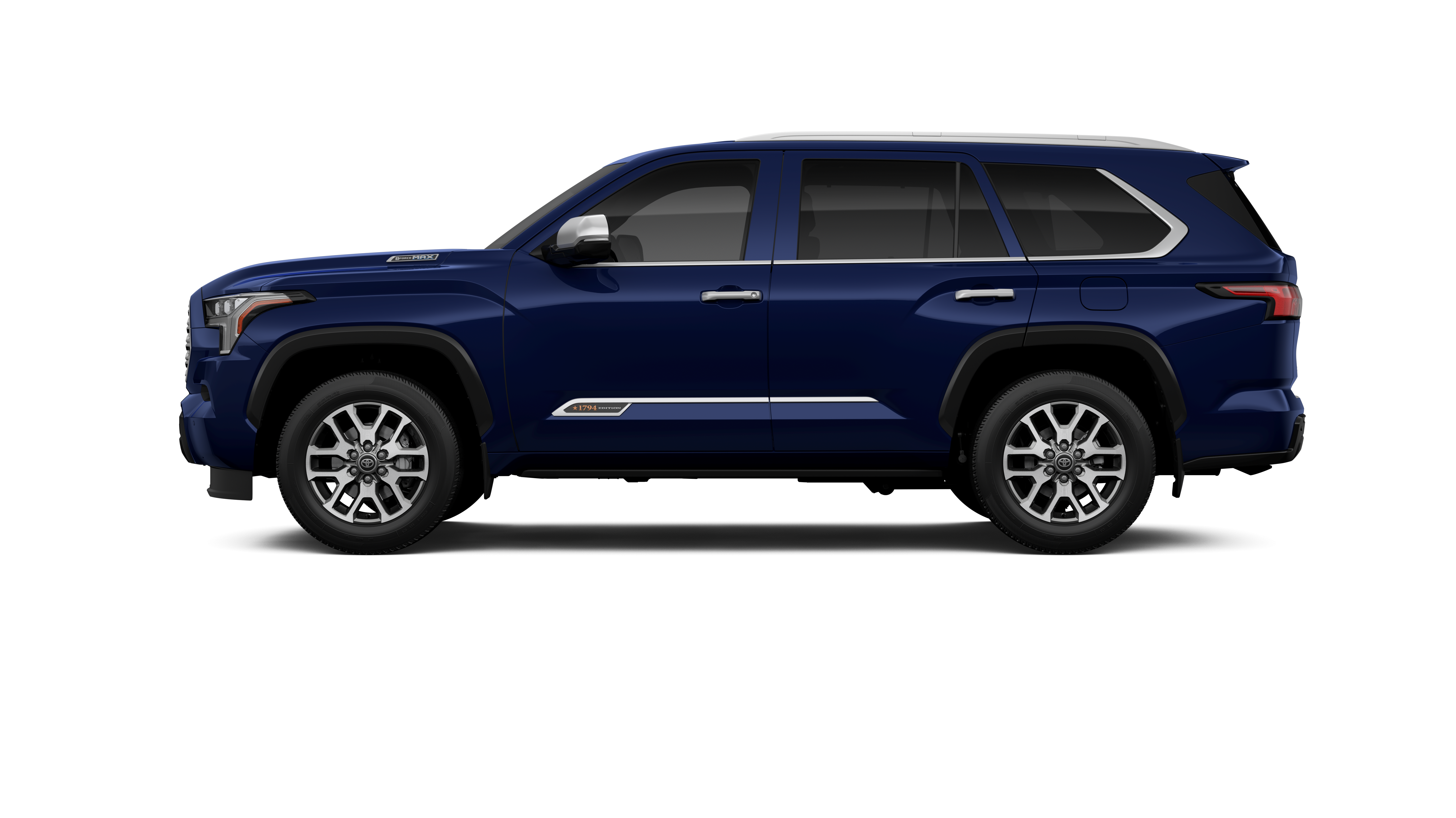 - Bright-chrome "SEQUOIA" rear door badge, chrome "1794 EDITION" door badge and garnish, door handles, window molding and mirror caps; color-keyed tailgate spoiler; black-painted overfenders