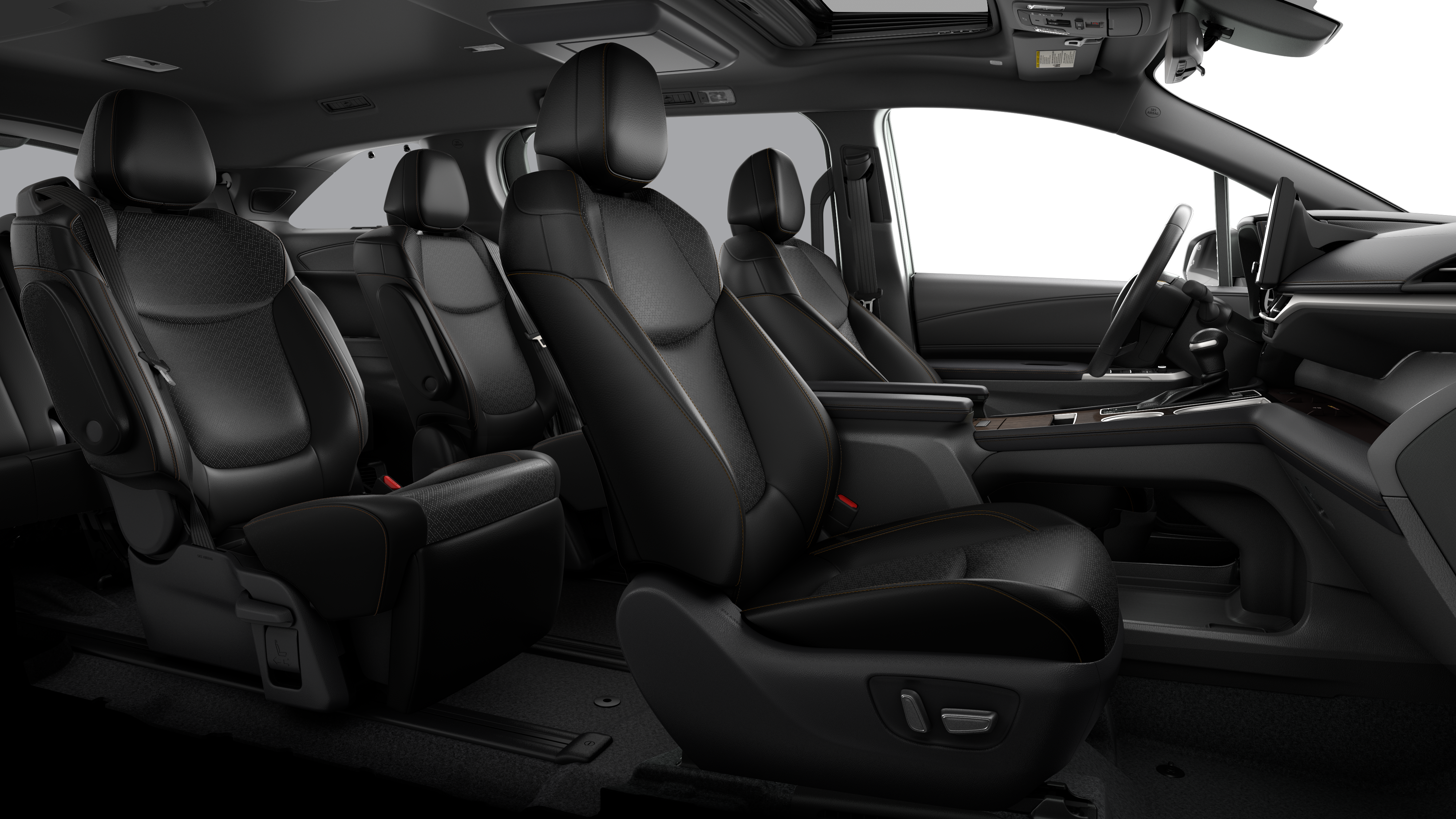- 7-passenger seating with premium leather-trimmed second-row-seat captain's chairs with super-long-slide feature and ottomans
