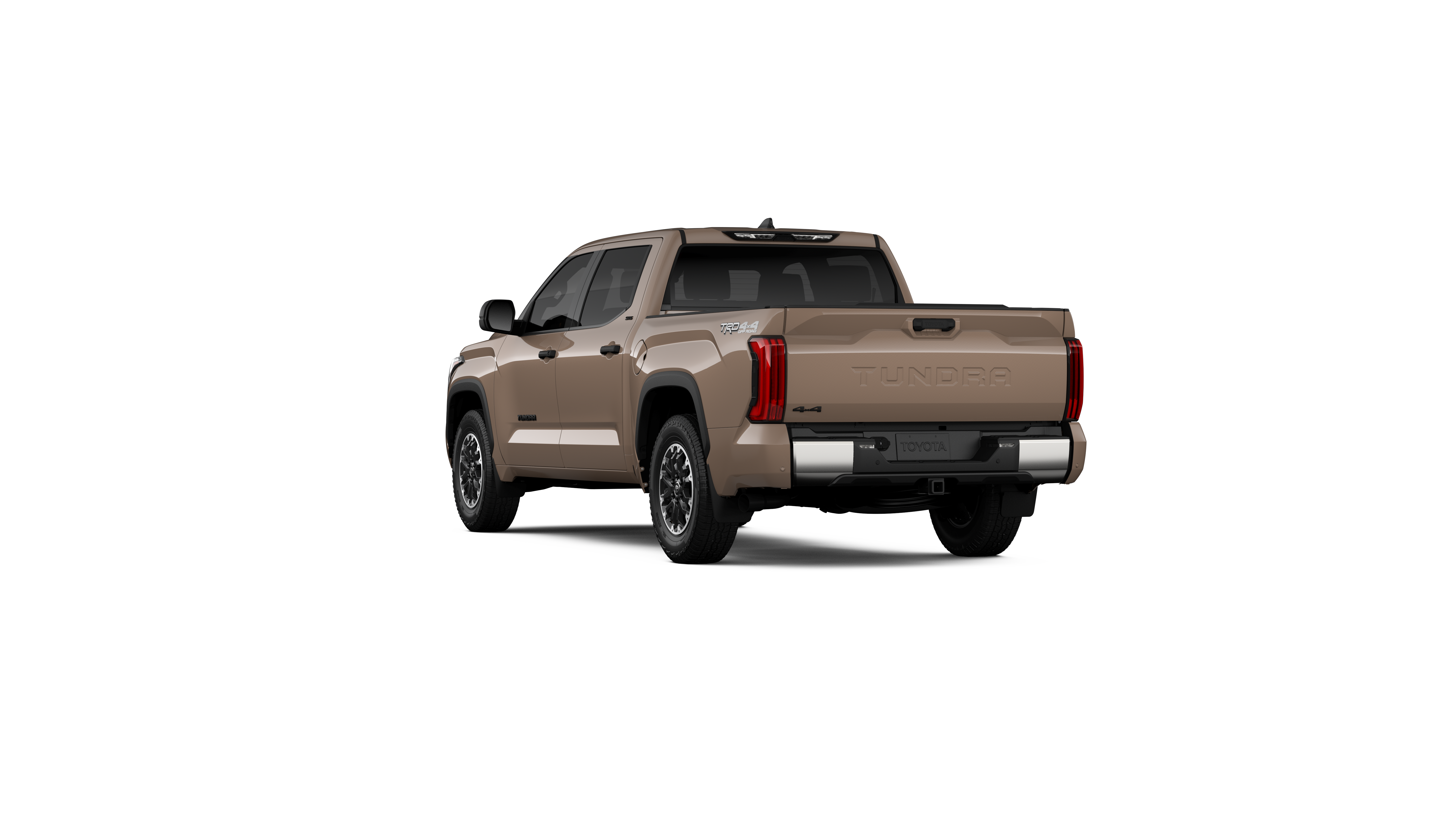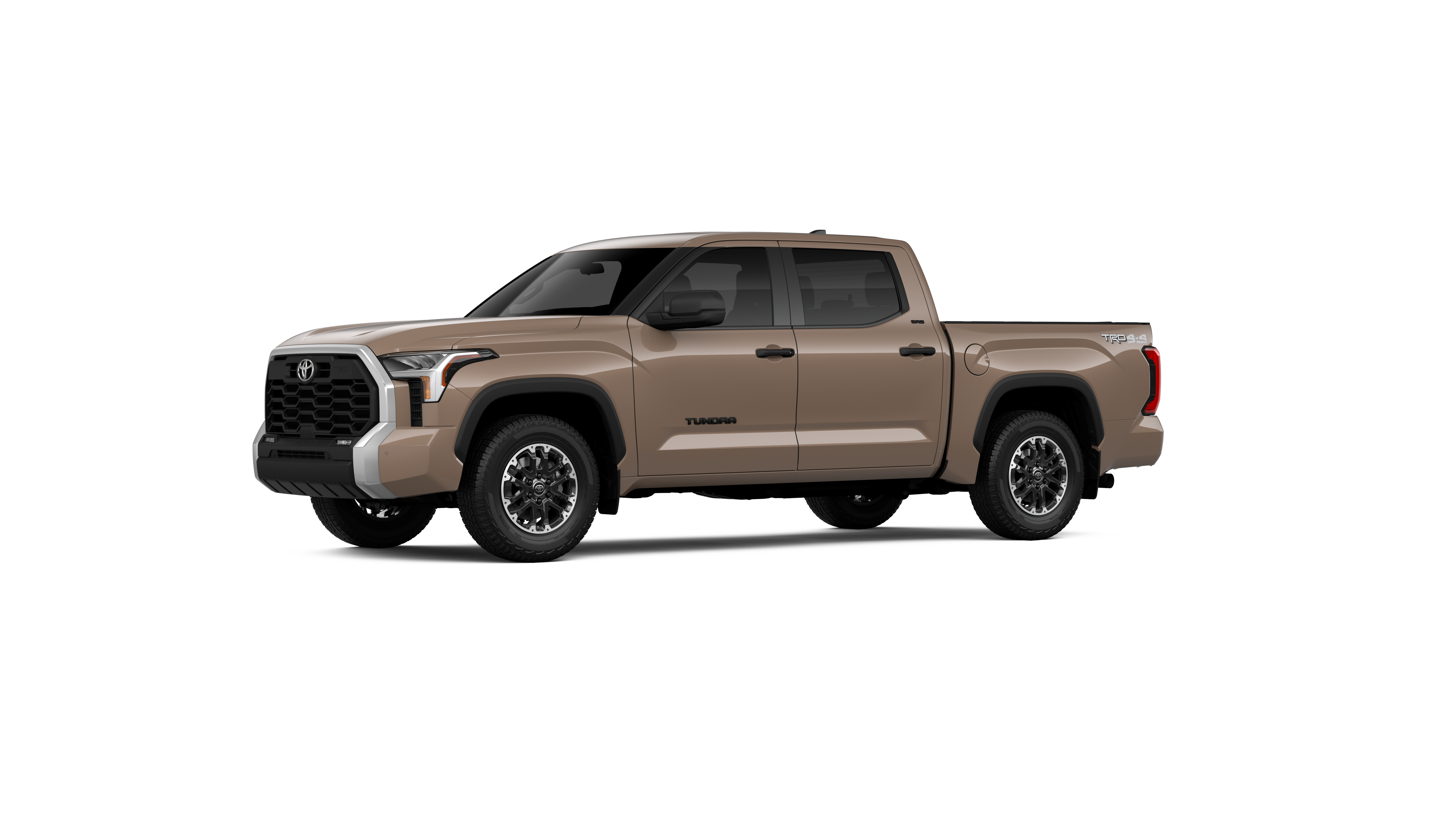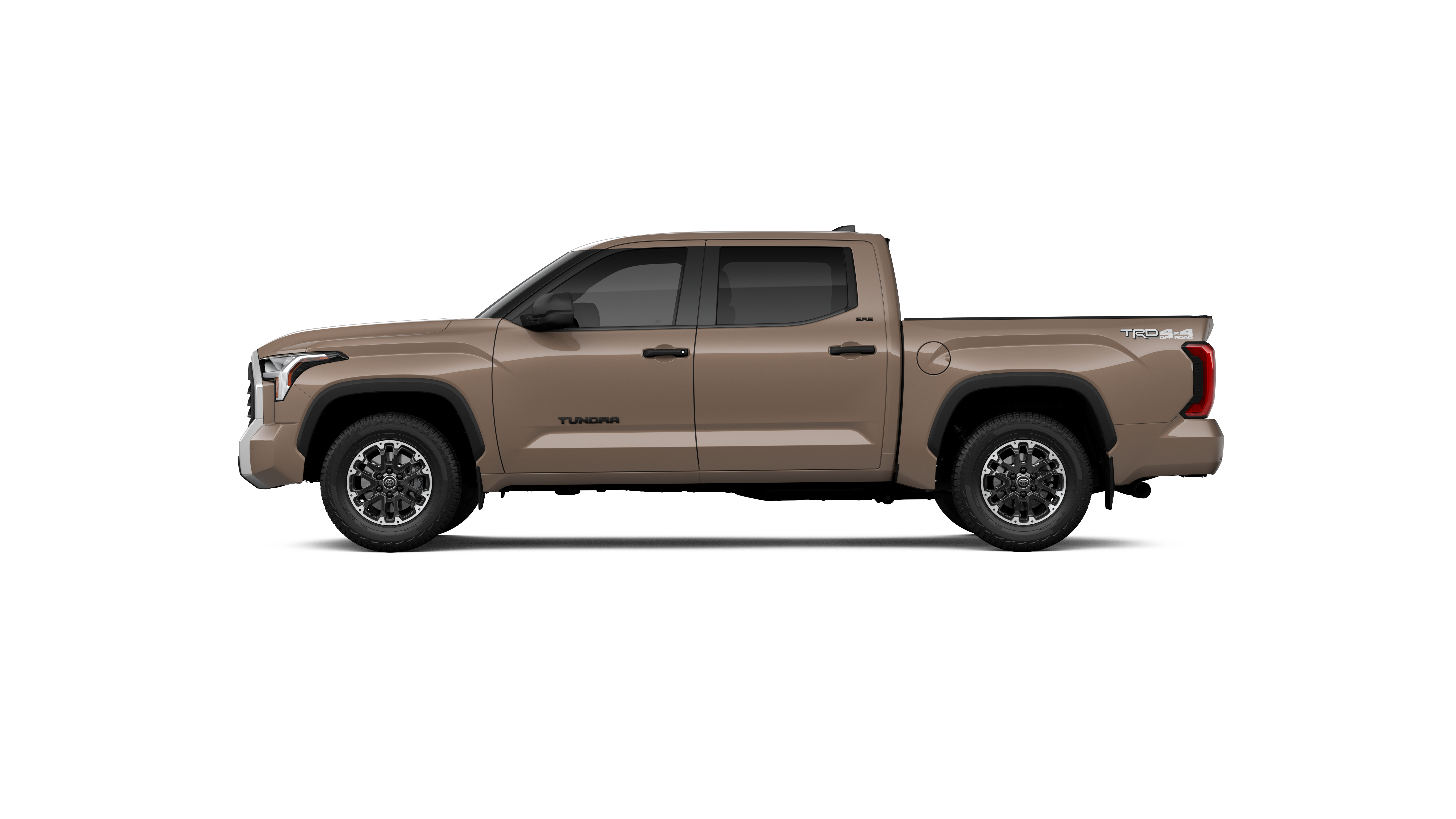 - Chrome "TUNDRA" and "SR5" door badges; black door handles, window molding, mirror caps, tailgate spoiler and overfenders